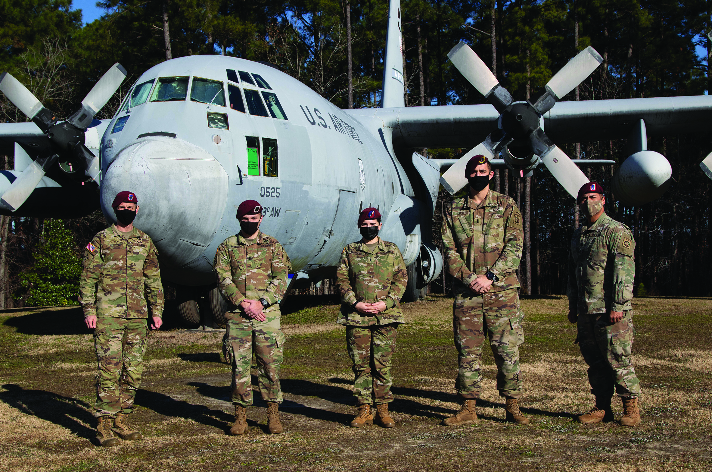 The All-American Division OSJA wants to congratulate the three officers who were recently accepted in to the U.S. Army Judge Advocate General’s Funded Legal Education Program. This was the first application cycle that enlisted Soldiers were eligible to apply, making this year’s selection board exceptionally competitive. These paratroopers will begin law school in Fall 2021 and will be on their way to becoming the newest group of judge advocates! AATW! Pictured from left to right: COL Jeffrey Thurnher (SJA, 82d ABN DIV), 1LT William White (FLEP applicant, 3BCT), 1LT Angelique Margve (FLEP applicant, 82d ADSB), 1LT William Ratliff (FLEP applicant, 1BCT), and CPT John Reyes (Chief, Contract & Fiscal Law, 82d ABN DIV).