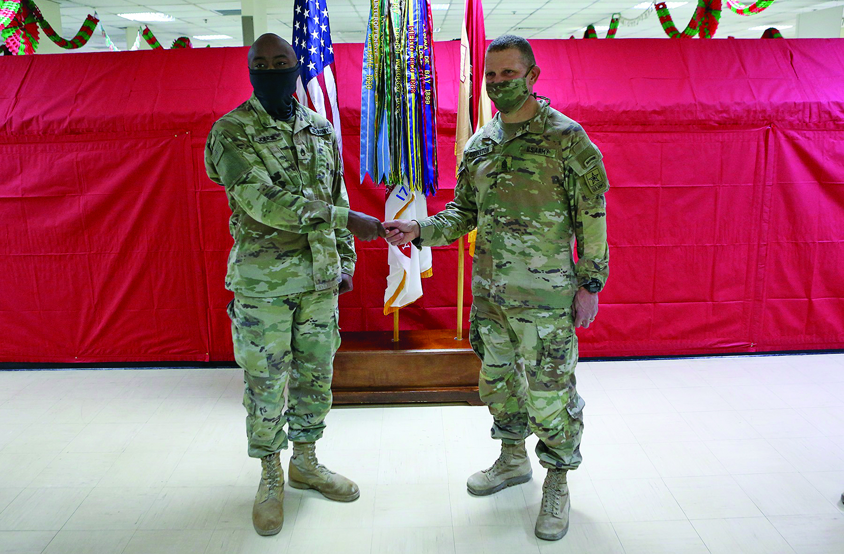 SSG Marquis Jones, NCOIC, Area Support Group-Qatar legal office, Camp As Sayliyah, Qatar, recently received a coin from the Sergeant Major of the Army. SSG Jones was recognized by the SMA for asking an insightful question about the COVID-19 vaccine and for facilitating an ASG-QA NCOPD discussion on the Report of the Fort Hood Independent Review Committee. Patton’s Own! First Team!