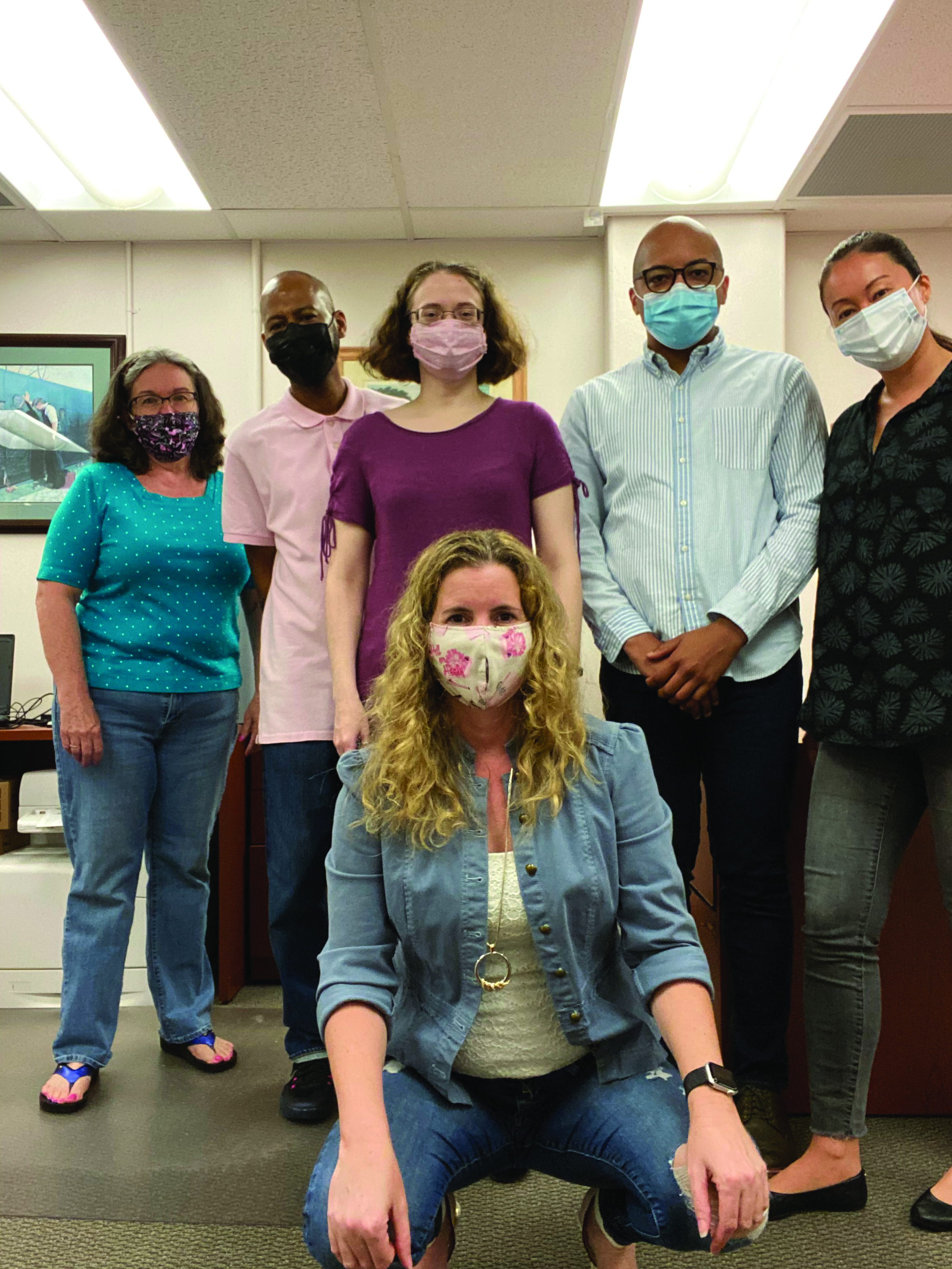 The Fort Belvoir OSJA supported the Fort Belvoir SHARP Office’s Denim Day 2021. The wearing of denim is an affirmation of the participant’s commitment to establishing a command climate of dignity and respect, as well as demonstrates the participant’s pledge to support survivors of sexual assault. Pictured in the back row L to R: Mrs. Karen Shaner (SAUSA Paralegal), Mr. Daryl Coleman (MJ paralegal), SFC Deborah Denney (Chief Paralegal NCO), CPT Brandon Gaskew (AdLaw), CPT Kim Bowman (AdLaw); Kneeling: CPT January Turner (Chief, Military Justice).