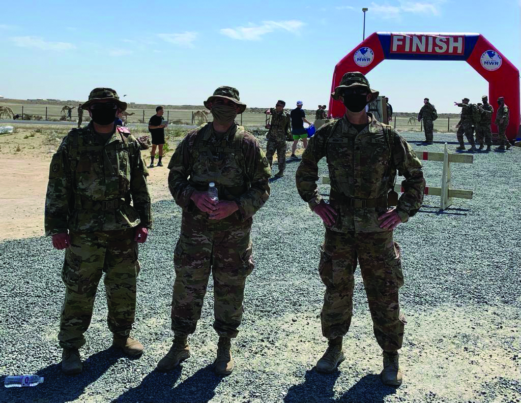 MSG Kenneth Acevedo (ARCENT Forward CPNCO), LTC Michael Pratt (ARCENT Forward SJA), and LTC Steven Meints (ASG-K CJA) completed the Norwegian Foot March (30k with 25lbs Ruck) on 7 March 2021 at Camp Arifjan, Kuwait.