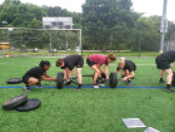 Photo 4Student Detachment Command Team, CPT Zara Scribner and 1SG Tiffany Diringer, along with G1 staff, SPC Musgraves, and 1SG Diringer’s twin sister, Tabitha Sturgill, working together to change weights out more efficiently.