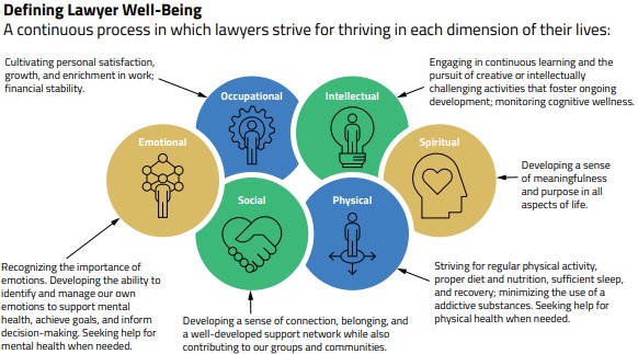 The graphic from the Task Force’s report further defines lawyer well-being.14