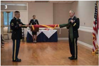 Photo 3: BG Gerald Krimbill uncases his general officer flag upon being promoted to Brigadier General on 23 August 2019. BG Krimbill is the Chief Judge for the U.S. Army Court of Criminal Appeals (IMA).