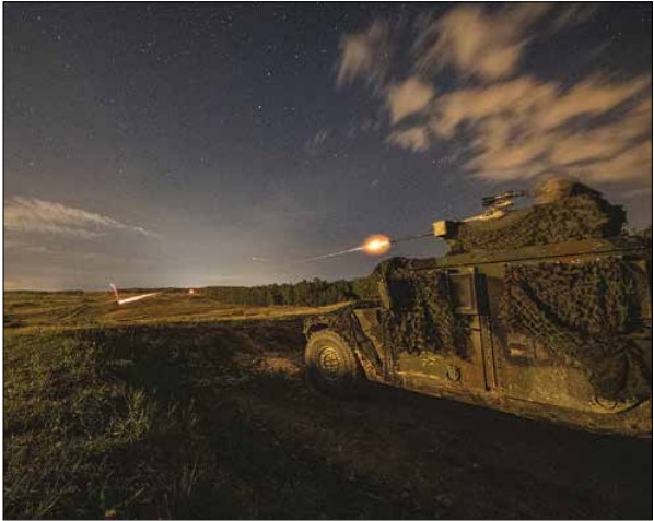 A U.S. Army Soldier fires a .50-caliber machine gun during a live-fire exercise at Grafenwoehr Training Area in Germany in August. (Credit: Army Sgt. Henry Villarama)