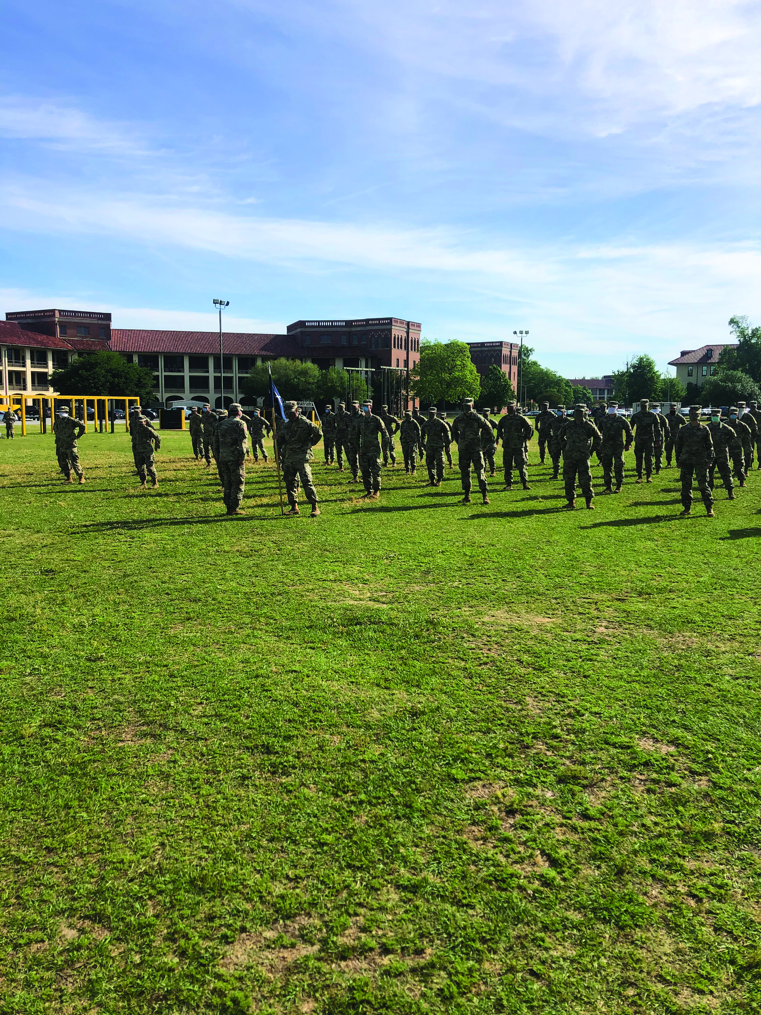 Members of the 211th Judge Advocate Officer Basic Course – in face masks required because of the COVID-19 pandemic – graduate from the Direct Commissioned Officer’s Course. (Credit: COL Jackie Thompson, Staff Judge Advocate, U.S. Army Maneuver Center of Excellence and Fort Benning)