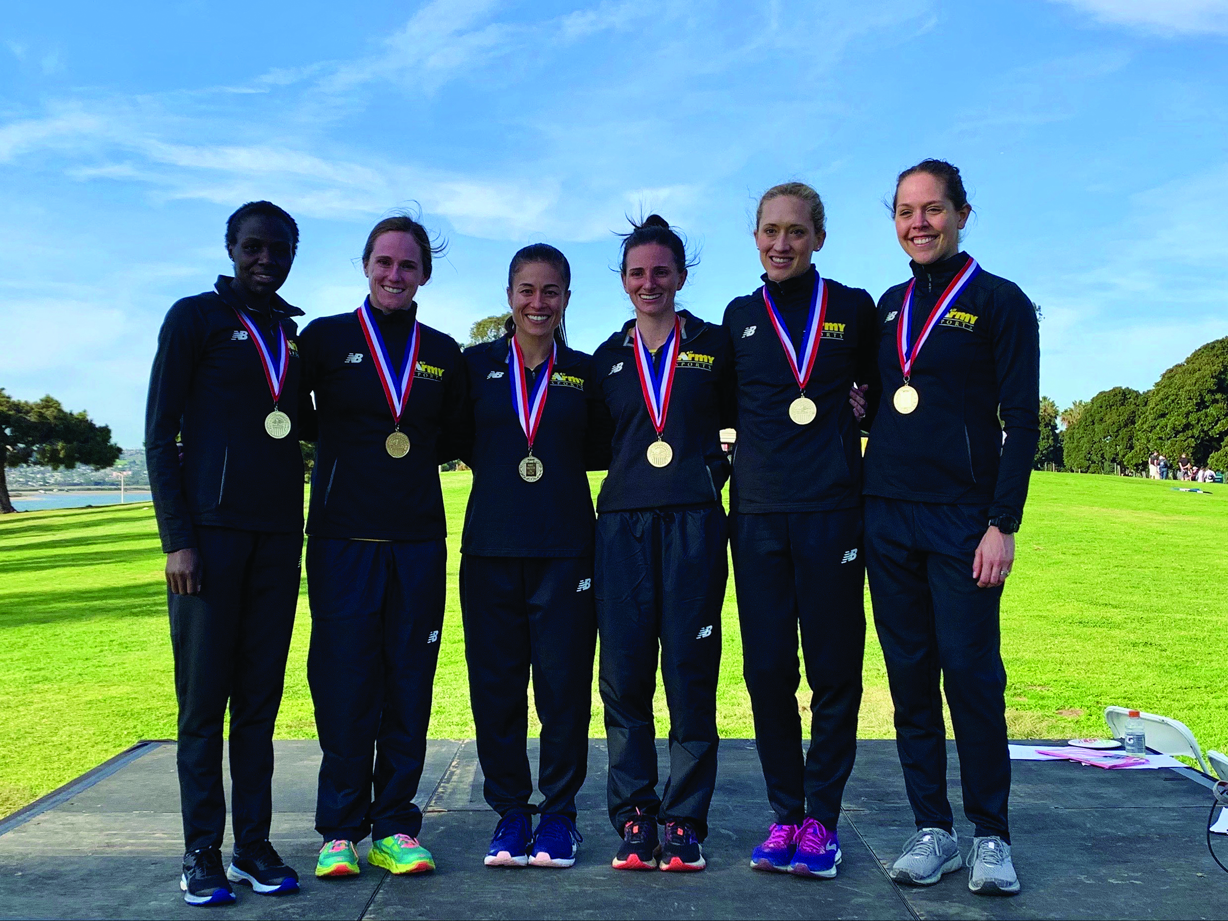 Photo 1: Captain Chelsea Kim (second from left), an XVIII ABN Corps Legal Assistance Attorney, was a member of the All-Army Women’s team that finished first in the 10k at the U.S. Track and Field Cross-Country Championship. Captain Kim ran the race in 41.07, finishing twenty-fourth overall.