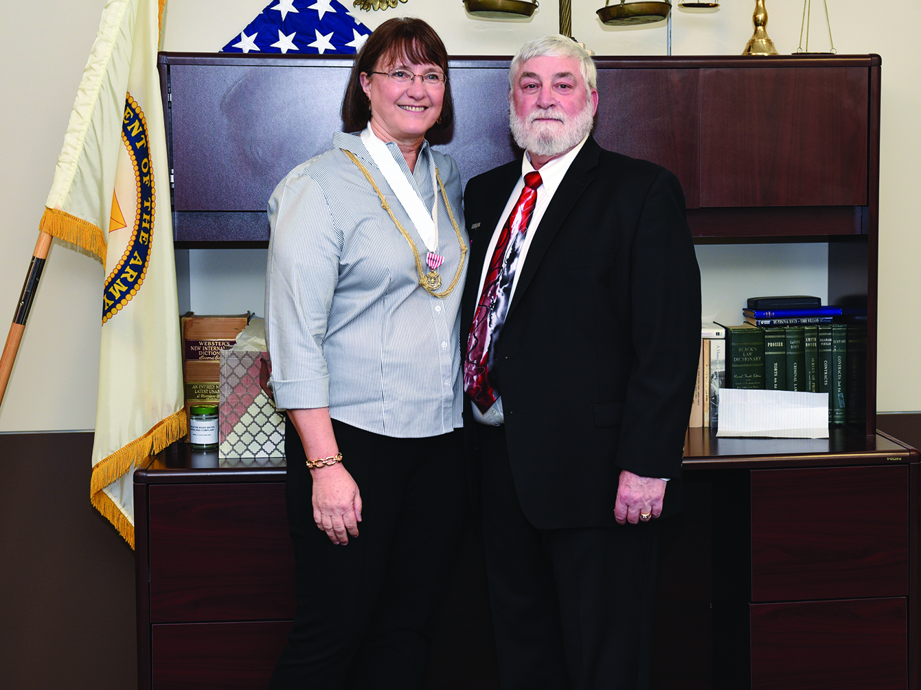 Photo 3: On 31 January 2020, Mr. Toland, Command Counsel, U.S. Army Materiel Command, hosted the retirement ceremony for Mr. John German. Mr. German was the primary subject matter expert on environmental compliance and restoration issues for U.S. Army Materiel Command, and was widely recognized as an environmental law expert by the Office of The Judge Advocate General and the Department of the Army. The ceremony officially recognized Mr. German’s forty-year career as a judge advocate and civilian environmental law attorney, and included his wife, Janet, and many retired staff judge advocates, colleagues, and friends.