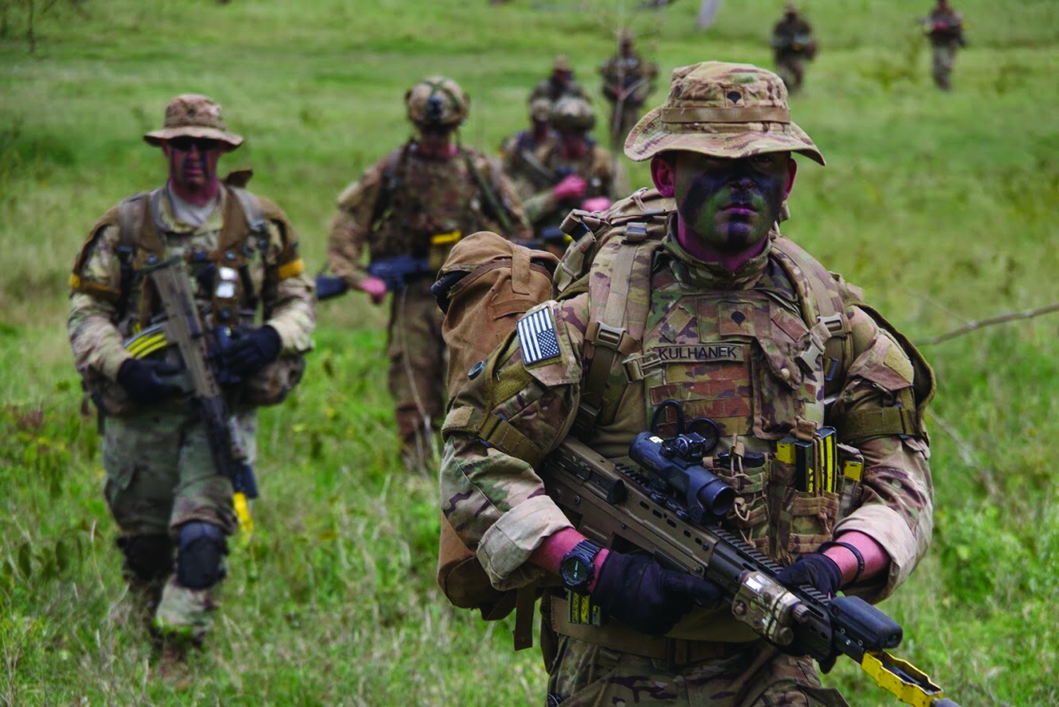 Paratroopers from 1st Battalion, 508th Parachute Infantry Regiment conduct a training patrol alongside British paratroopers of 2PARA, 16 Air Assault Brigade in Kenya. (Credit: Spc. John Lytle)