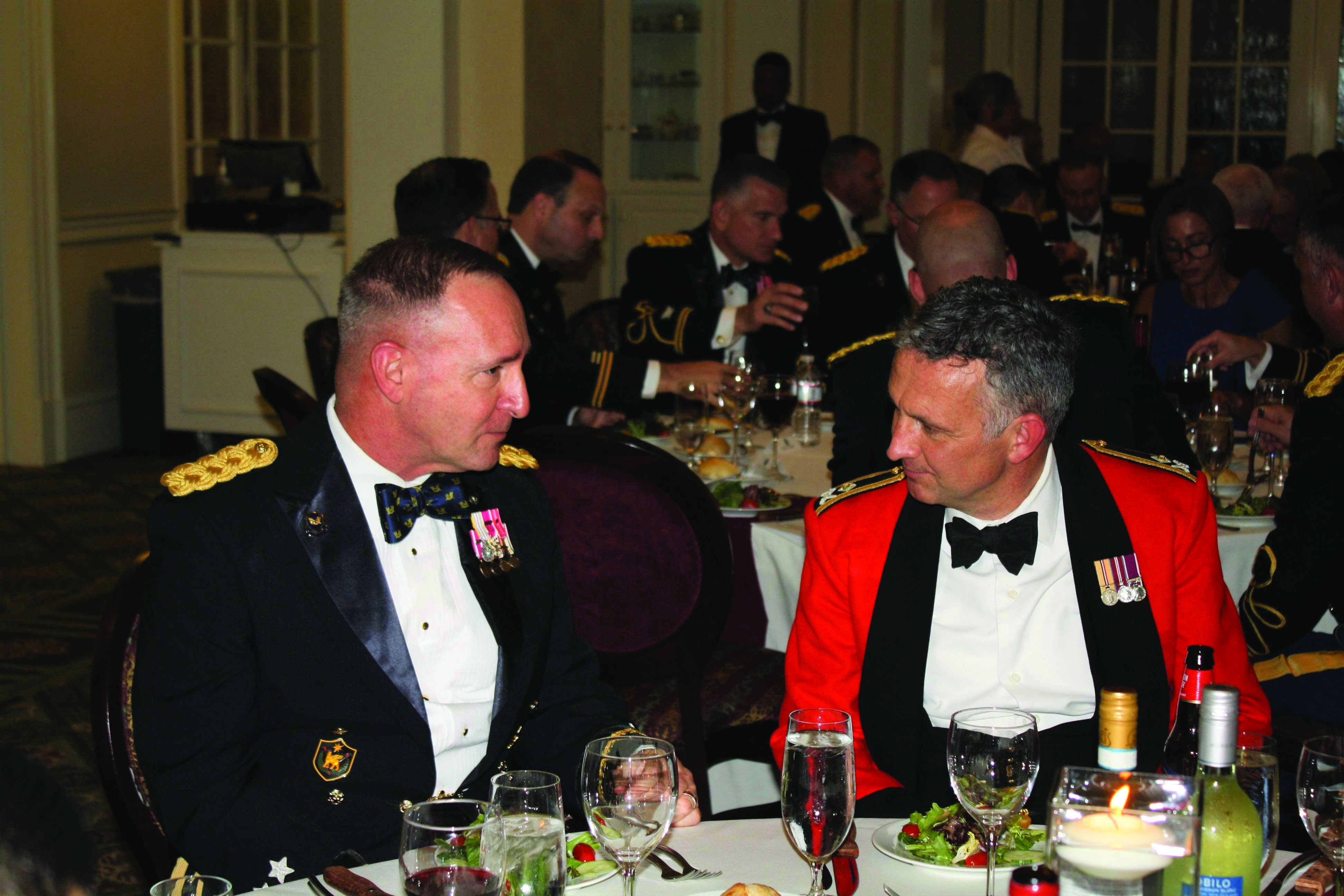 LTG Charles Pede, The Judge Advocate General, and his British counterpart, Maj Gen Alexander Taylor, dine together at the Military Formal event during the WWCLE in September 2019.